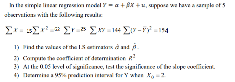 In The Simple Linear Regression Model Y A Bx U Chegg Com