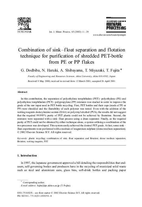 Pdf Combination Of Sink Float Separation And Flotation Technique For Purification Of Shredded Pet Bottle From Pe Or Pp Flakes Gjergj Dodbiba Academia Edu